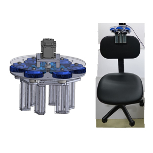 本研究では、これらの問題を解決するため,通常使われている電動車いすを対象とし、倒立振子型の電動車いすで用いていた空気クッションを用いて、車いす搭乗者の重心移動のみで前進・後退・旋回の操作を行うための進行方向指示装置の開発を行っている。空気クッションは体圧分布を調べることにより、前と左右及び後ろの4つの空気クッションから構成している。本装置を用いるとジョイスティックを使うことなく体動での操作が可能となっており、軽作業を行いながらの移動も可能になっている。本装置は既存の電動車いすにも容易に外付け可能で、現在使われている電動車いすへの適用も期待できる。