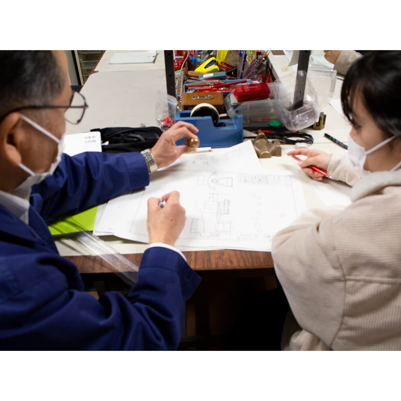 ものづくりの世界では、図面を通して設計者と製作者の間で正しい情報が伝達されなければなりません。2年次では、手書きで図面の描き方や読み方を学ぶことができる「機械製図」と、コンピュータを使って図面の描き方を学ぶことができる「CAD/CAM I」という科目があります。また3年次には、3次元的な物体の設計に役立つ3D CADを学ぶことができる「CAD/CAM II」という科目もあります。